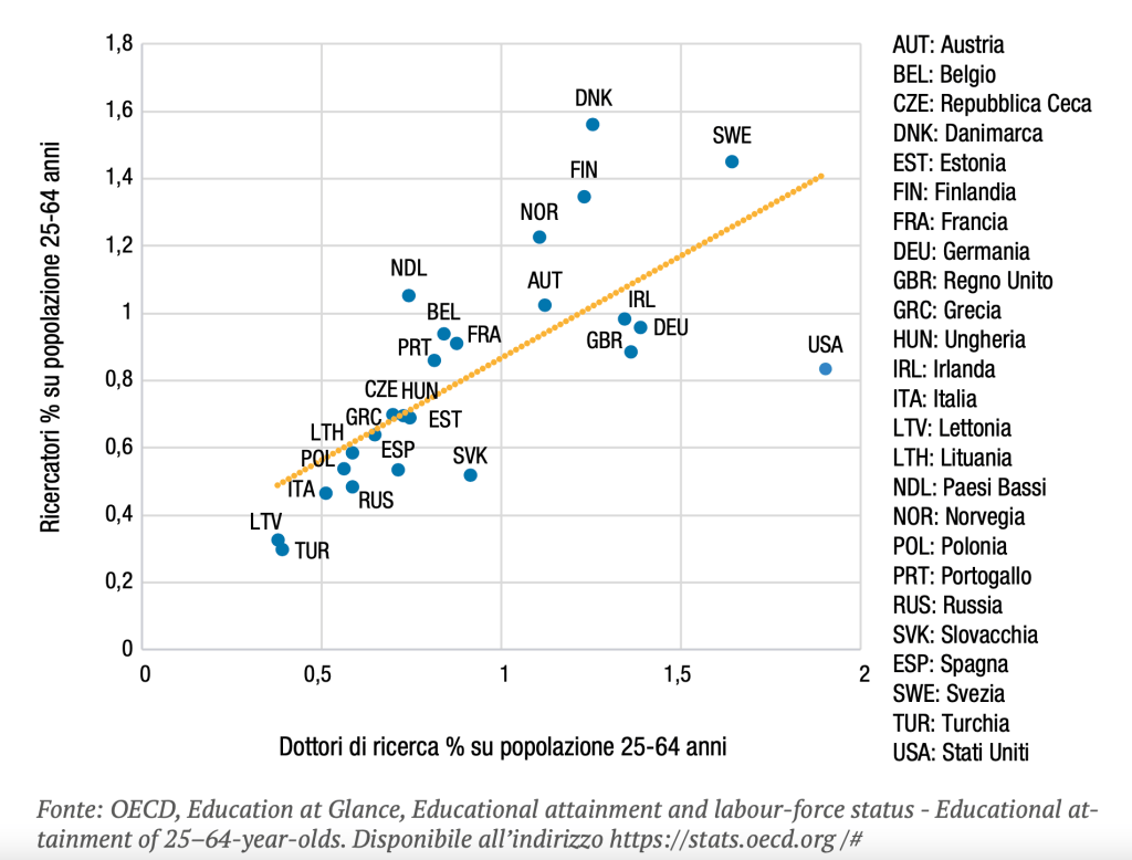 Grafico elaborato dal CNR nella terza edizione della “Relazione sulla ricerca e l’innovazione in Italia”.